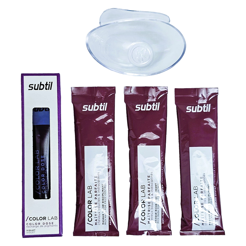 Subtil ColorLab Color Dose Anti-Frizz Set transforms your hair beauty mask into a re-pigmenting mask with Subtil Color Dose.